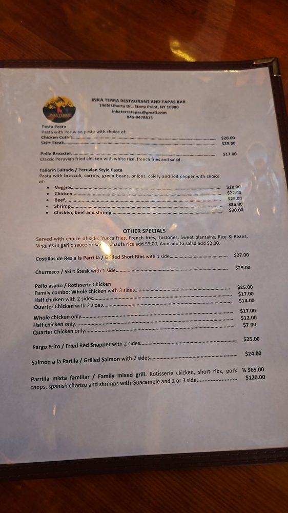 Inka Terra Restaurant & Tapas Bar Menu (Update 2025)